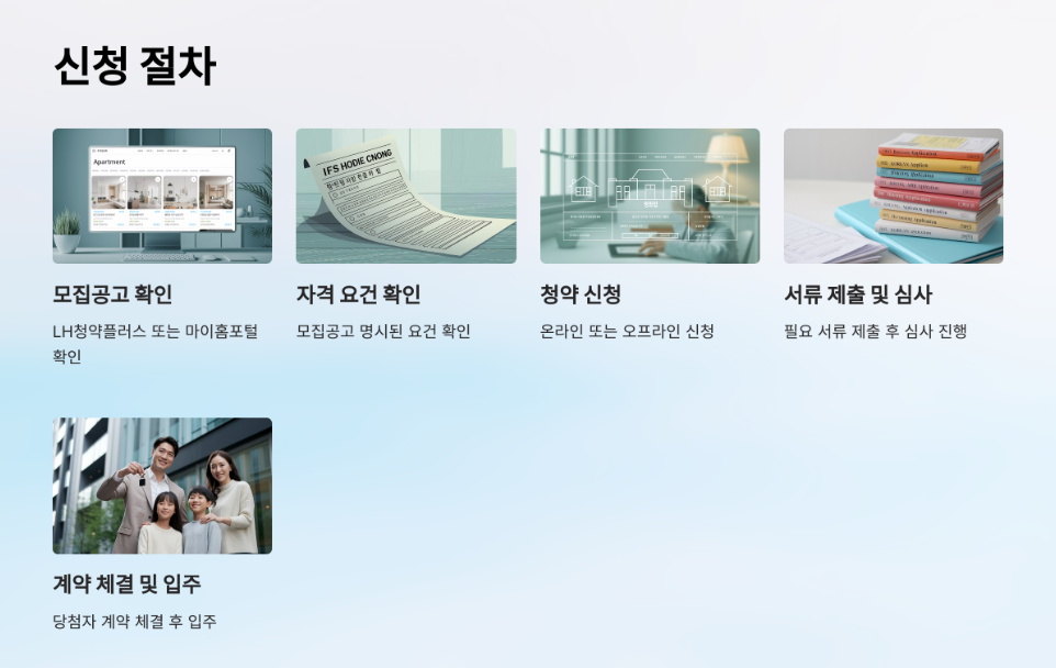 공공임대주택 신청은 다음과 같은 절차로 진행됩니다