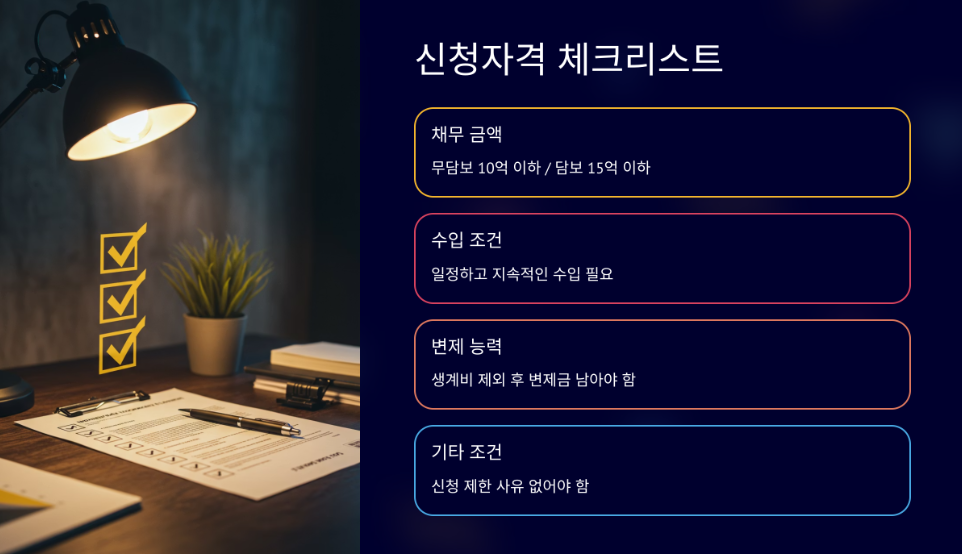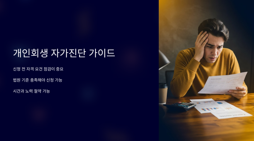 | ✅ 신청 제한 사유 없음 | 최근 회생 기각 이력, 고의적 채무, 사기 등은 제한될 수 있음 |