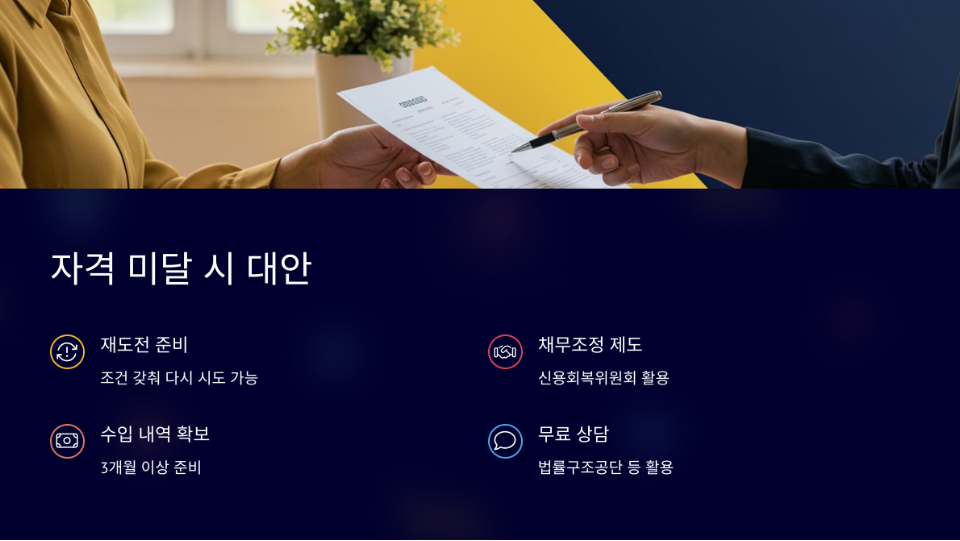 - 🔹 법률구조공단 등 무료 상담 활용해 정확한 자격 점검