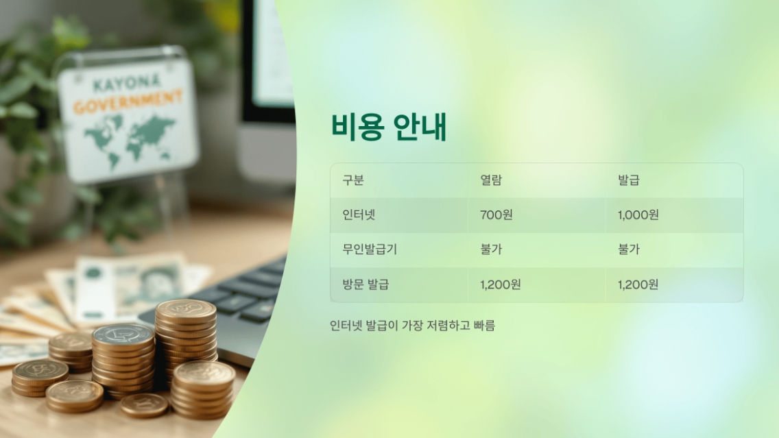 ※ 인터넷 발급이 가장 저렴하고 빠릅니다.