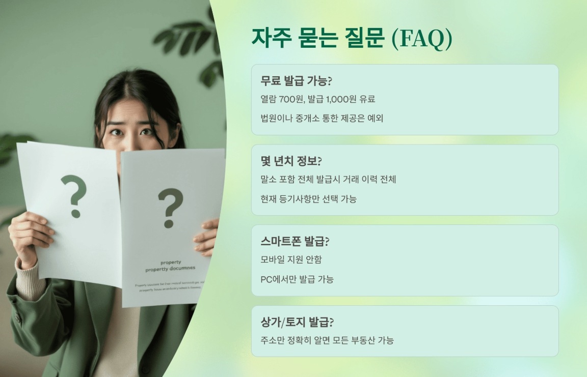 A. 열람은 유료(700원)이며, ‘무료’는 없습니다. 단, 법원이나 중개소를 통한 제공은 예외일 수 있습니다.