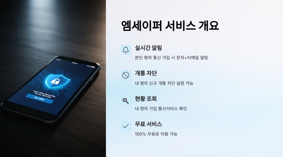 쉽게 말해, 누군가 내 이름으로 몰래 휴대폰을 개통하려고 하면, 즉시 알림을 보내줘서 빠르게 대응할 수 있게 해주는 시스템입니다.