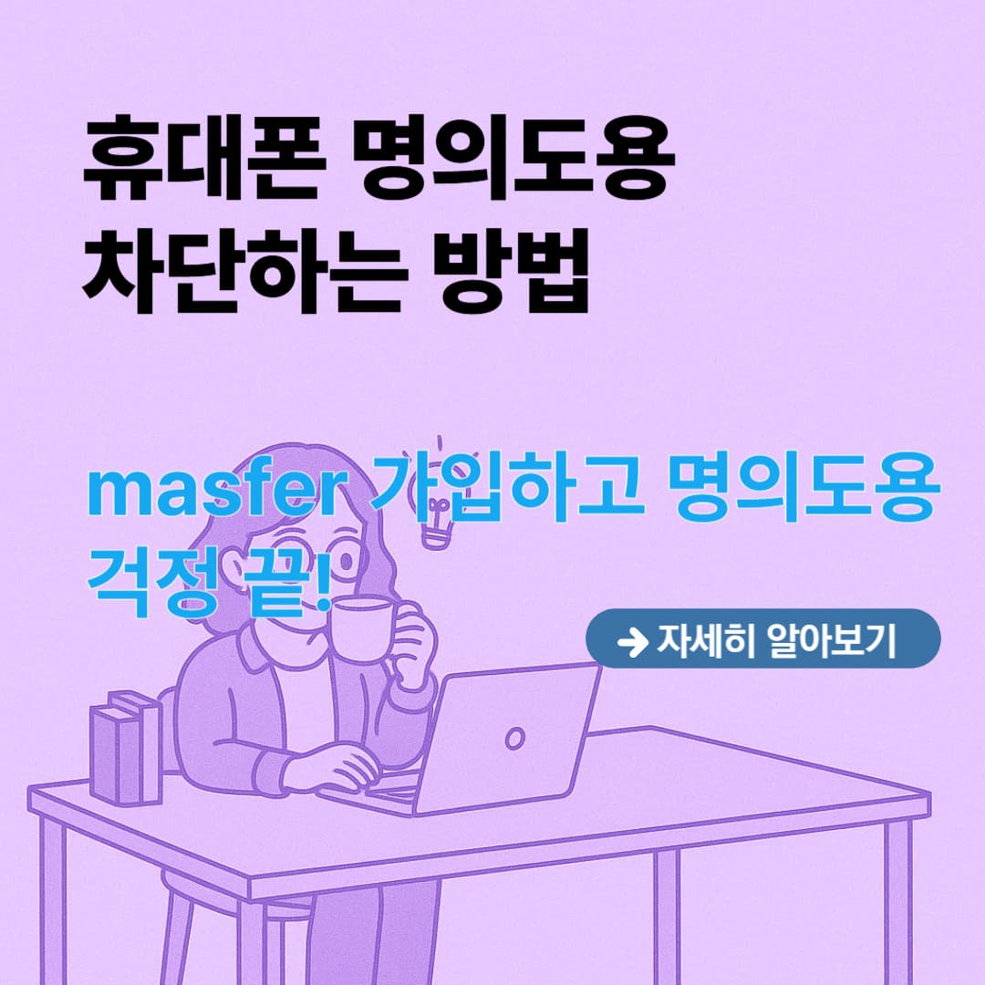 명의도용방지 서비스 masfer(m-safer)는 휴대폰 통신 가입 시 명의도용을 실시간으로 막아주는 무료 보안 서비스입니다. 가입 방법부터 실제 사용 후기까지 안내해 드리겠습니다.