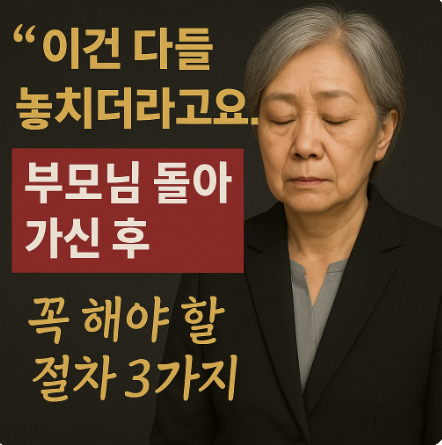 부모님의 사후 절차는 단순한 행정이 아니라 법적 책임과 세금 문제로 직결되는 중요한 단계입니다.