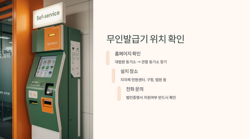 - 지자체 민원센터, 일부 구청 민원실, 법원 내 무인발급 코너에 설치