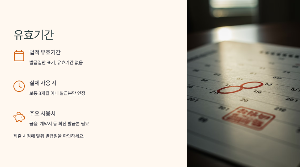 - 그러나 실제 사용 시에는 3개월 이내 발급분만 인정되는 경우가 많습니다.