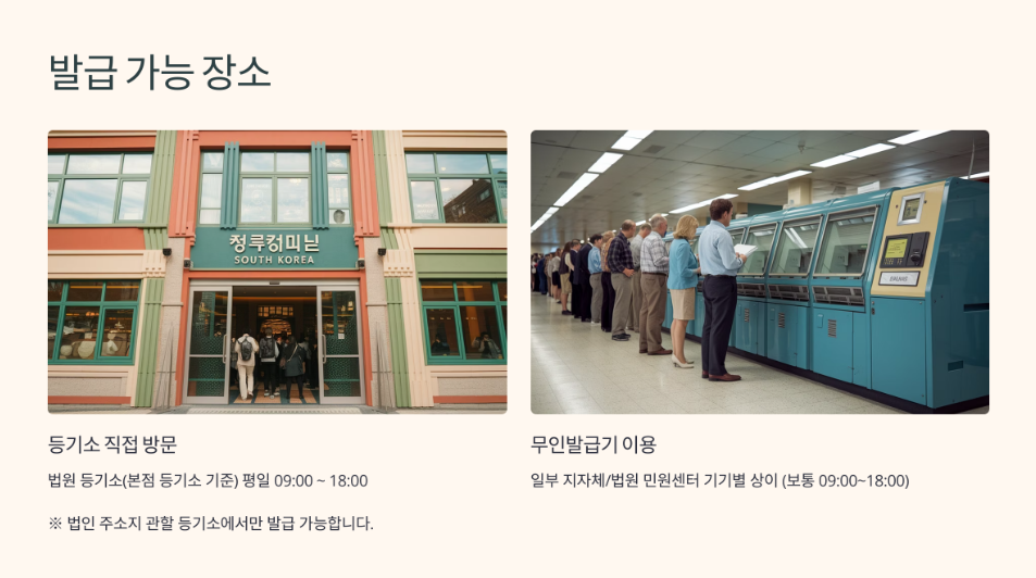 📌 법인 주소지가 등록된 관할 등기소에서 발급해야 하며, 타 지역에서는 발급이 제한될 수 있습니다.