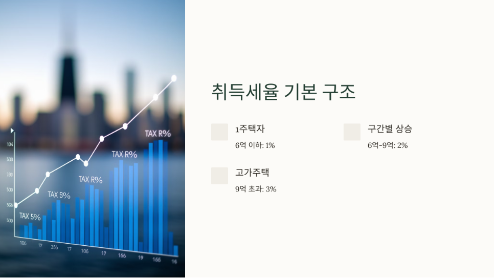 2025년 현재, 부동산 취득세율은 아래처럼 주택 가격과 보유 주택 수, 그리고 지역에 따라 다르게 적용돼요.