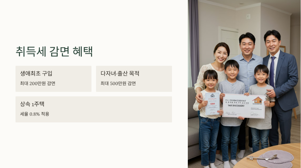 - 다자녀·출산 목적 구입자: 최대 500만 원 감면