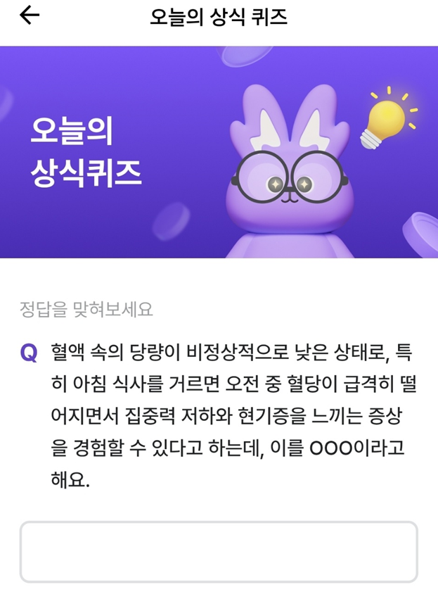 혈액 속의 당량이 비정상적으로 낮은 상태로, 특히 아침 식사를 거르면 오전 중 혈당이 급격히 떨어지면서 집중력 저하와 현기증을 느끼는 증상을 경험할 수 있다고 하는데, 이를 OOOO이라고 해요.