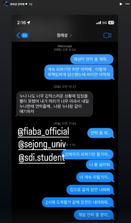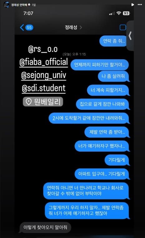 | 2025.05.03 | 문자 대화 공개 | 남자친구와의 문자 캡처 이미지 다수 공개, 감정 호소 및 연락 요구 |