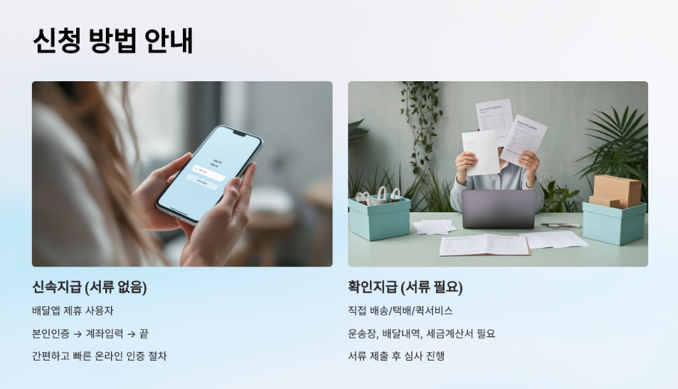 특히 직접 배달하는 경우, 서류 준비가 제대로 안 돼서 지원 누락되는 경우가 많아요!