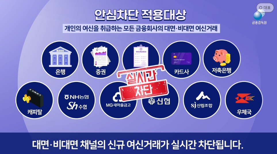 특히, 대면 거래(영업점 방문)뿐 아니라, 비대면 거래(인터넷, 모바일 앱을 통한 대출, 카드 발급)까지 모두 실시간으로 차단됩니다.