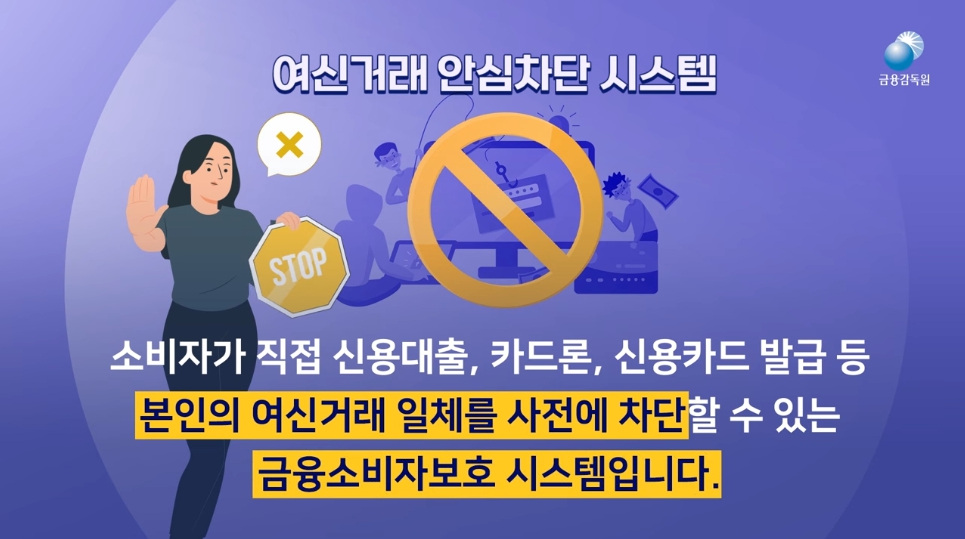 - "여신거래 안심차단 서비스 신청"을 요청합니다.