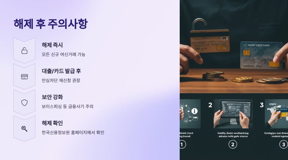 보안 강화를 위해 재차 여신거래 안심차단 재신청을 권장합니다. - 해제 여부도 한국신용정보원 홈페이지에서 확인할 수 있습니다.