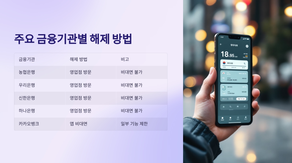 주요 금융기관별 해제 방법 안내