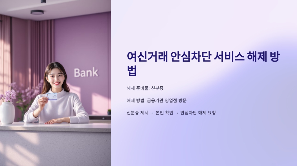 여신거래 안심차단 서비스 해제 방법을 안내합니다. 농협, 우리은행, 카카오뱅크 등 주요 금융기관에서 해제하는 절차와 주의사항까지 쉽게 정리했습니다.