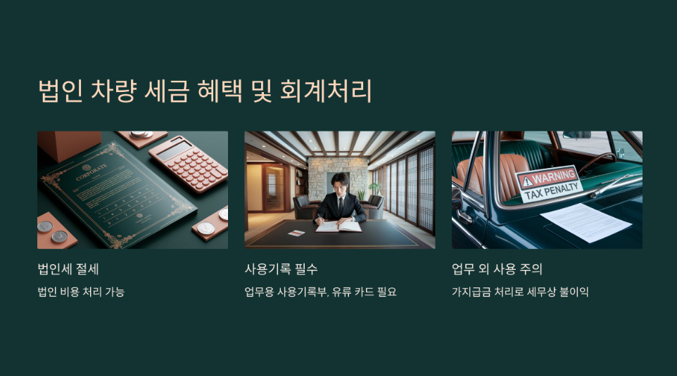 → 대표이사 사적 사용 시 세무조사 대상 될 수 있음 - 세금 혜택은 ‘업무 사용 증빙’이 있을 때만 적용