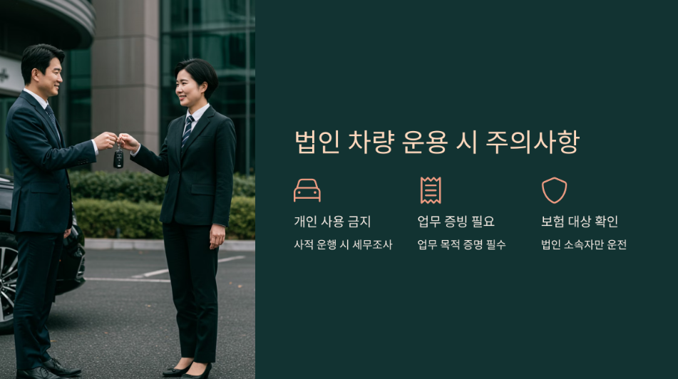 - 업무용 차량이더라도 개인 용도 사용 시 주의