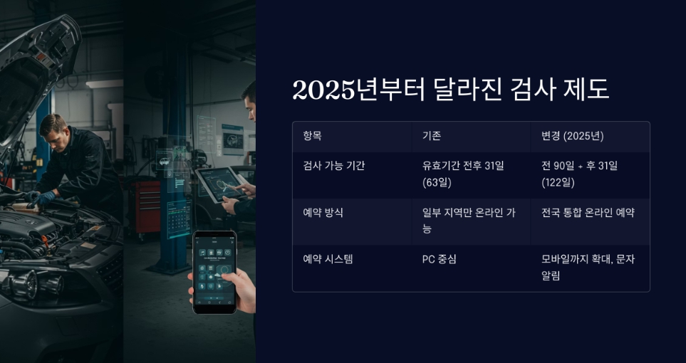 특히 2025년부터 검사 유효기간이 대폭 확대되고, 온라인 예약 시스템도 개선되어 더 쉽게 예약할 수 있게 됐습니다.