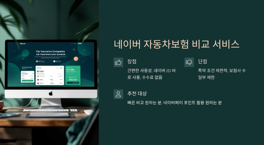 | 1. 네이버페이 자동차보험 | 웹 기반, 수수료 無, 간편 UI | PC 이용자, 네이버 사용자 | 바로가기 링크 |